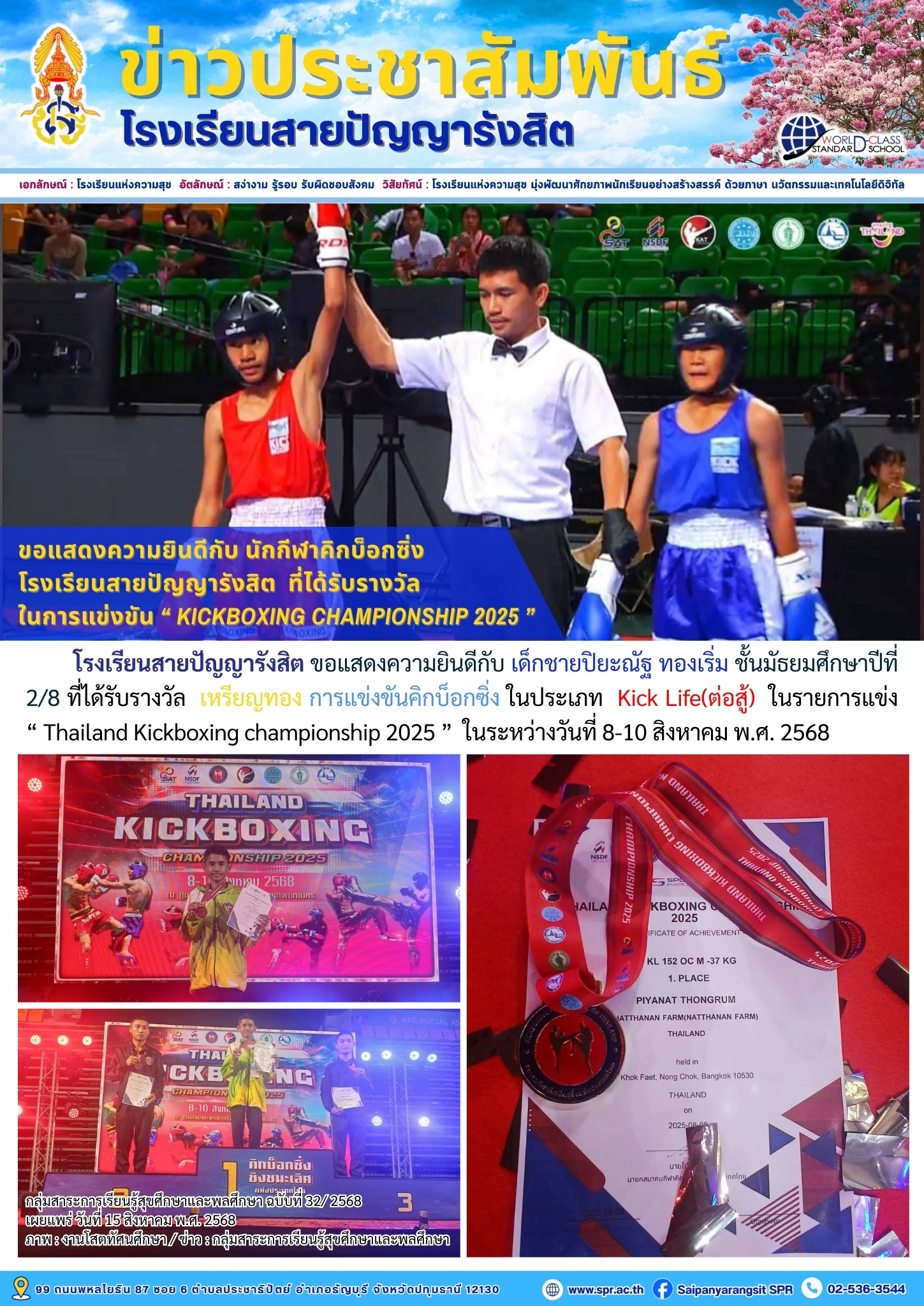 ขอแสดงความยินดีกับ นักกีฬาคิกบ็อกซิ่ง โรงเรียนสายปัญญารังสิต ที่ได้รับรางวัล ในการแข่งขัน “ Kickboxing championship 2025 ”